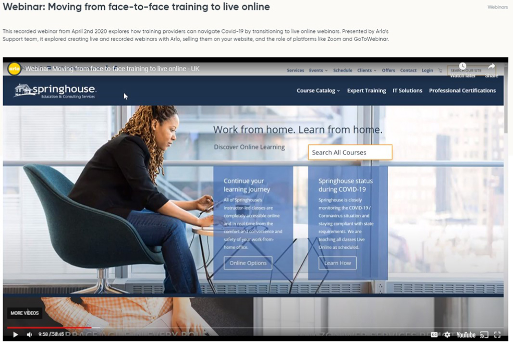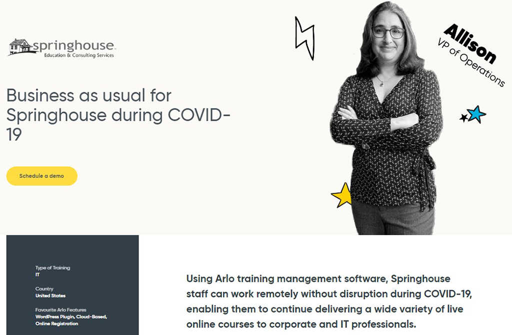 Summary: Springhouse contracted Arlo Training Management System as its training registration platform